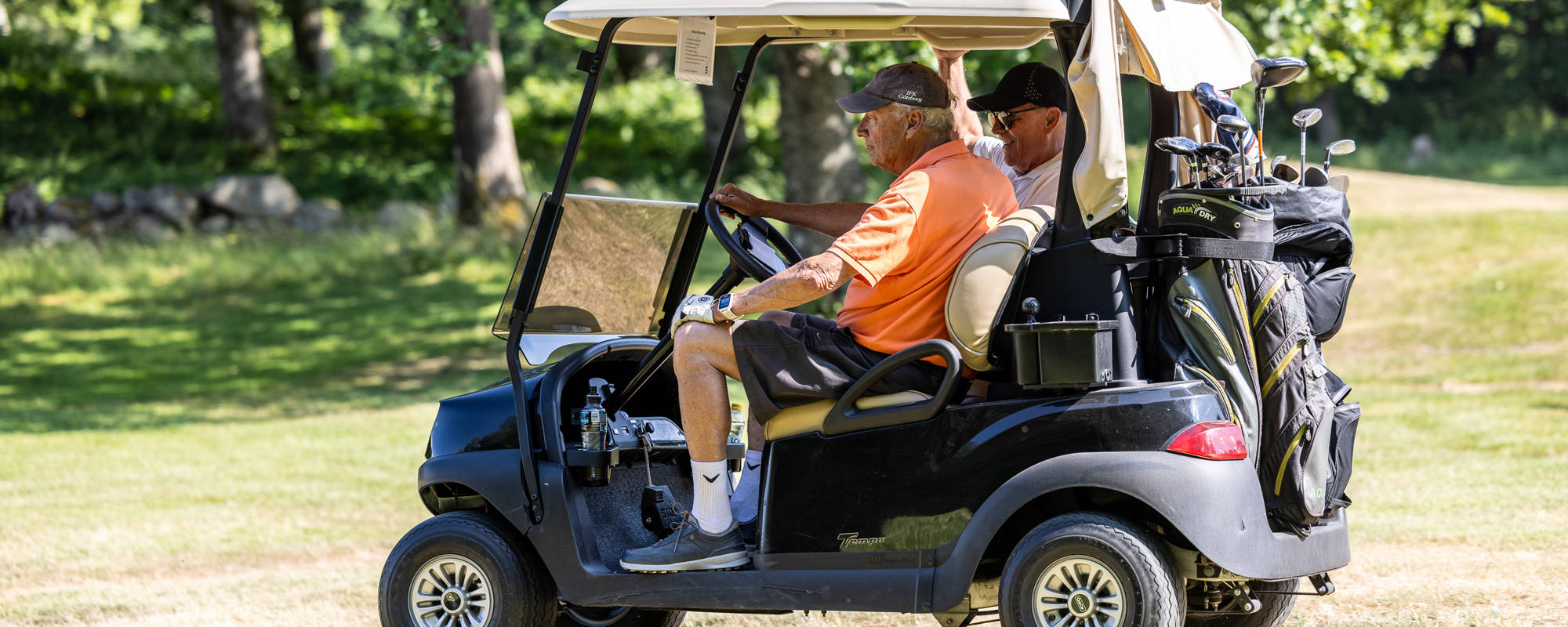 Golfvagnar finns tillgängliga för att hyra - 70 kronor per vagn 18-hål, 50kr 9-hål